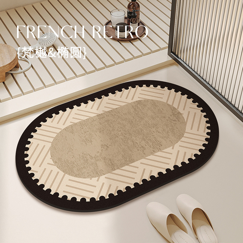 Bathroom Floor Mat Simple Wind Arc Diatom Mud Floor Mat Household Water Absorbent Quick-drying Anti-slip Mat Bathroom Door Mat