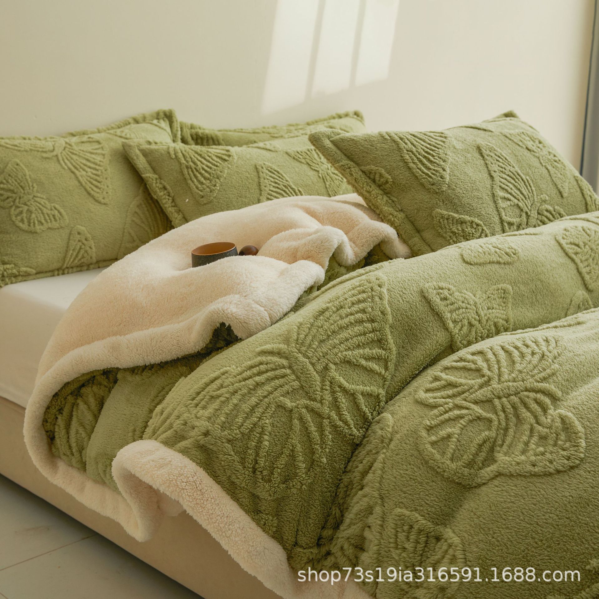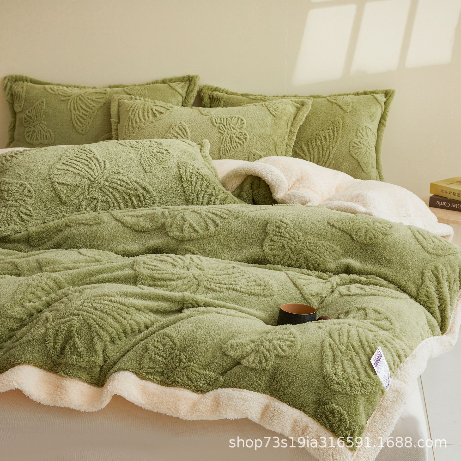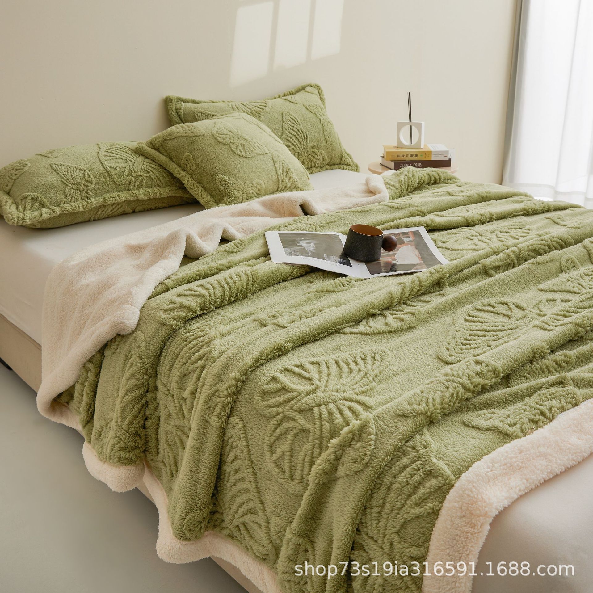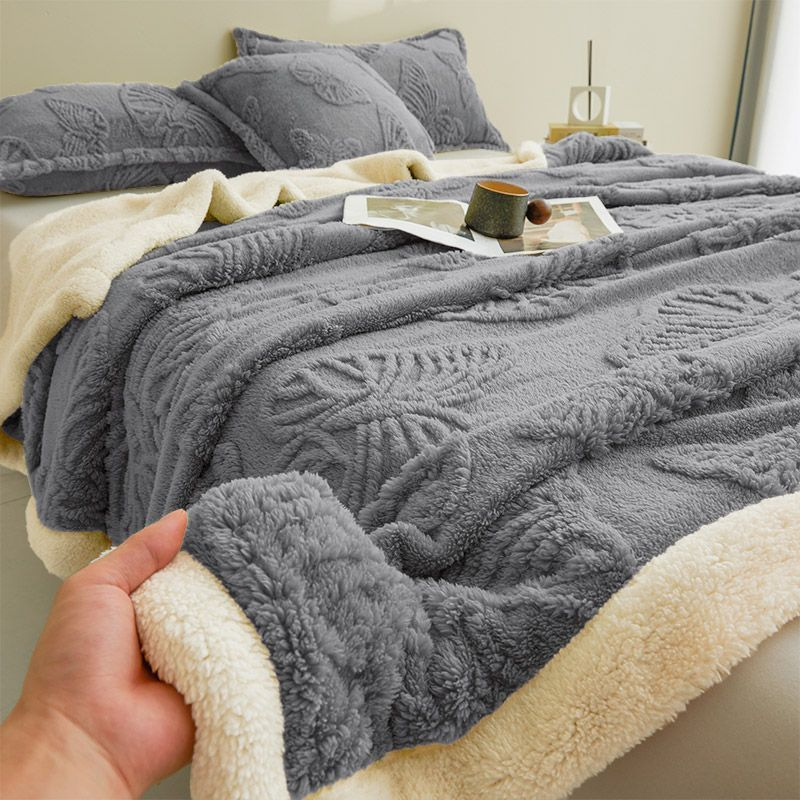 Cross-Border Solid Color Butterfly Taffeta Blanket Double Layer Thickened Lamb Velvet Blanket Winter Warm Air Conditioning Blanket Sofa Blanket